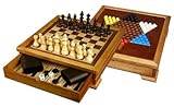 4 in 1 Wooden Game Set: Backgammon, Chess, Checkers, Chinese Checkers